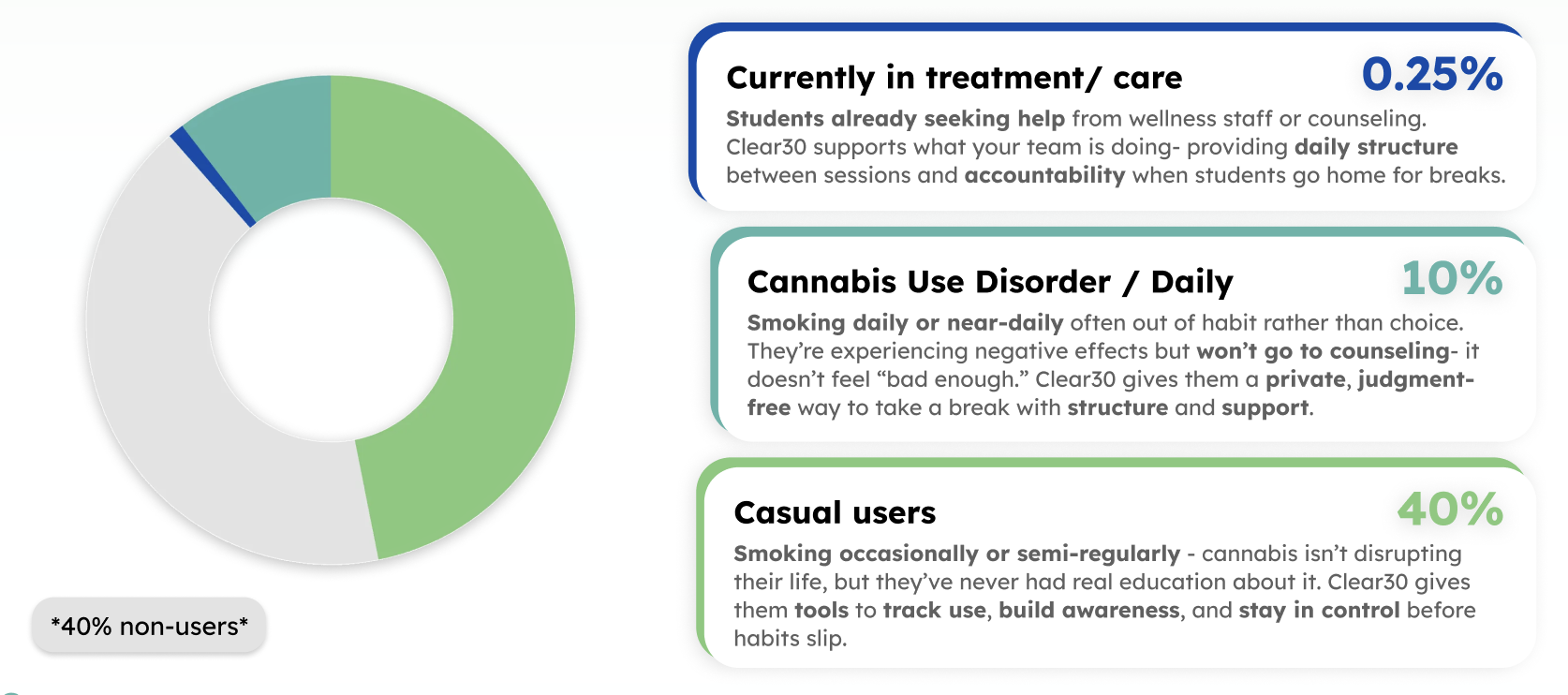 Clear30 was built with a competitive NIH/NIDA SBIR grant. We've completed Phase 1, which included building the core app and developing an adolescent version. The same research team continues to guide the product today.